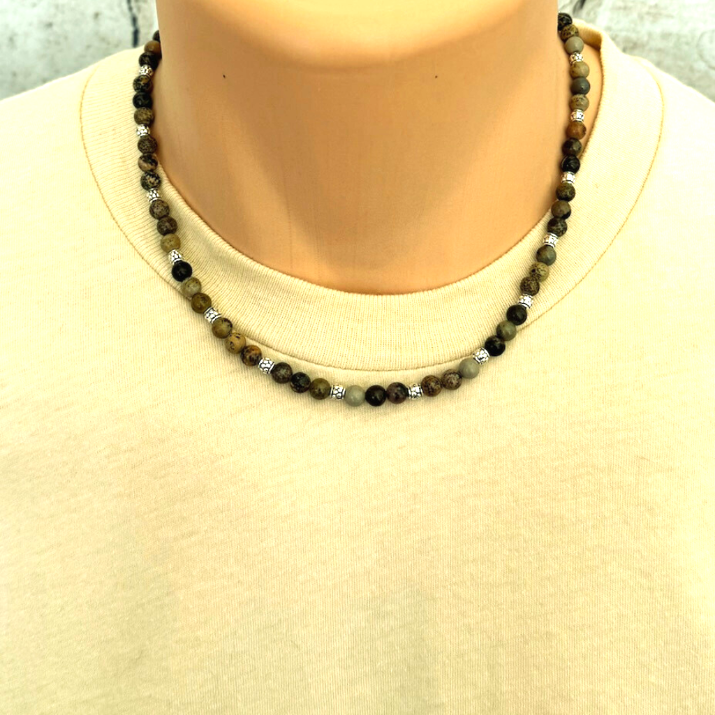 Artistic Stone Mens Beaded Brown Black and Gray Necklace