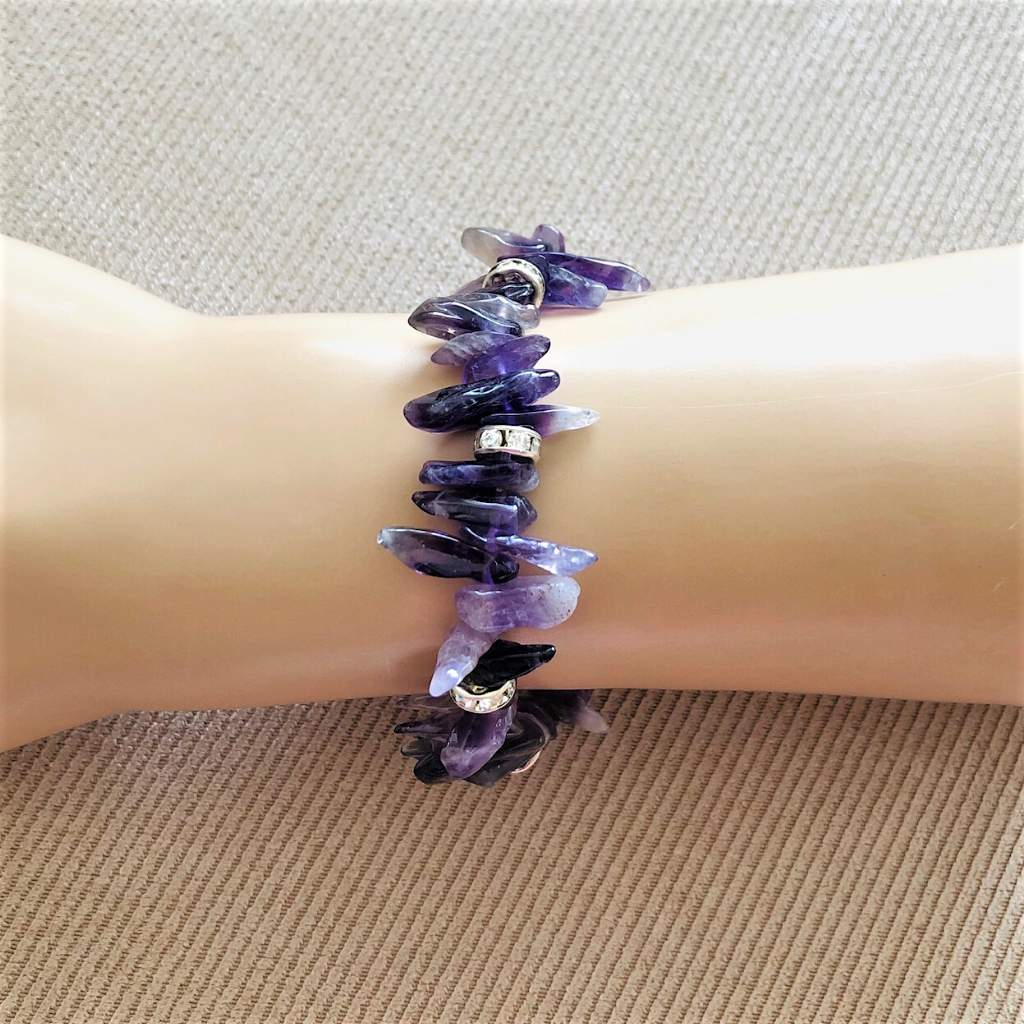 Amethyst Stick and Crystal Rondelle Stretch Bracelet