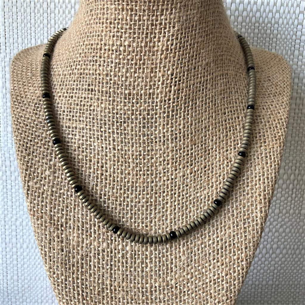 Antique Brass Hematite Matte Rondelle Mens Necklace