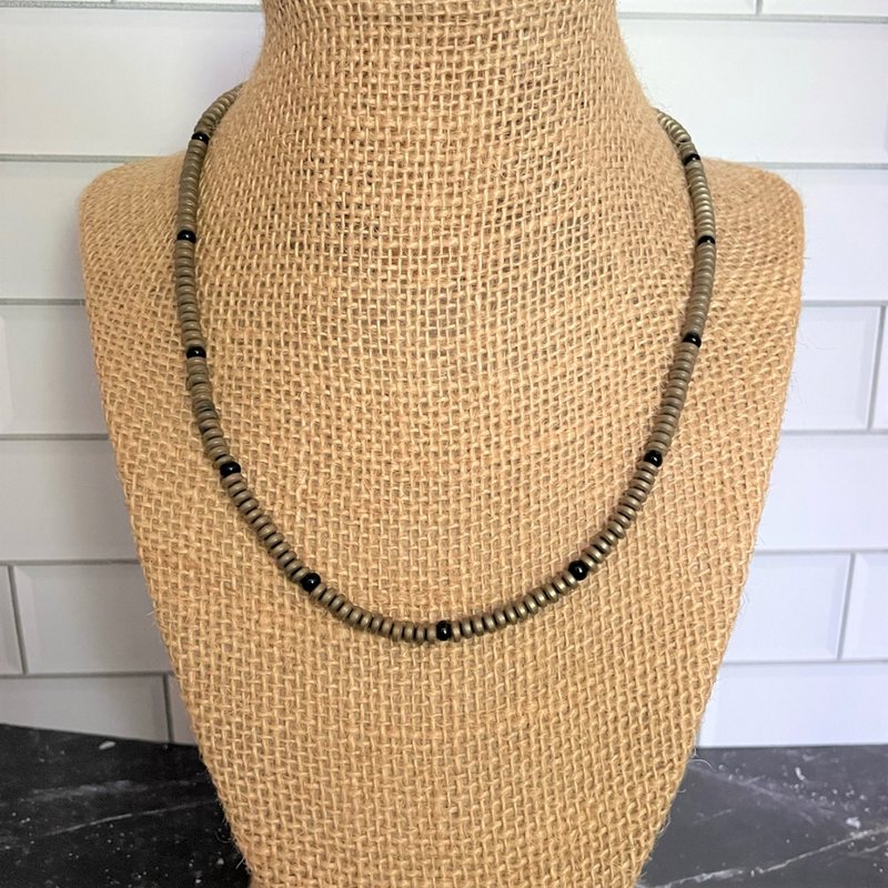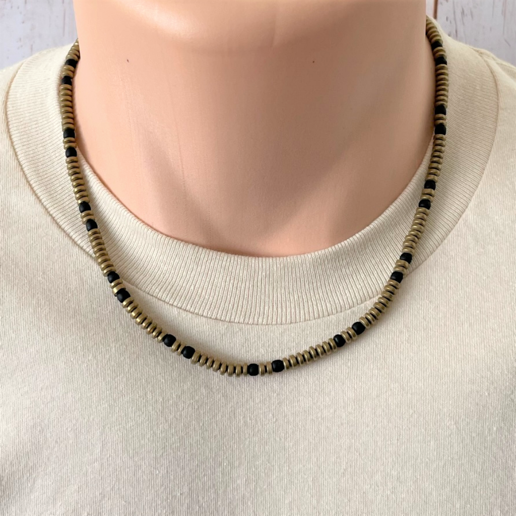 Antique Gold Matte Hematite and Black Mens Beaded Necklace