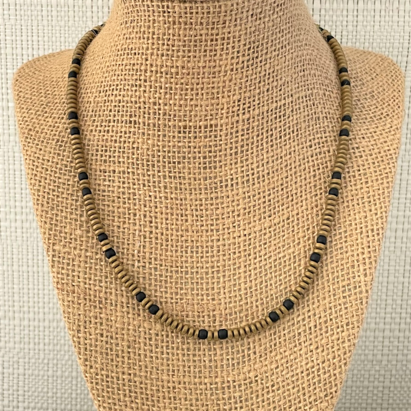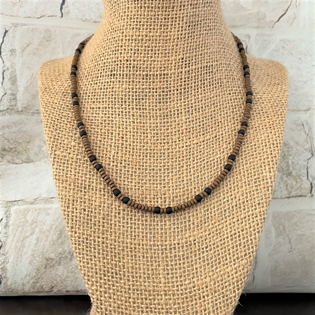 Antique Bronze Matte and Black Toho Mens Beaded Necklace
