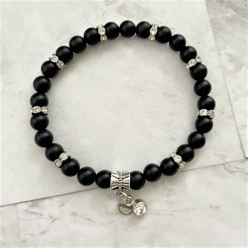 Matte Black Onyx and Rhinestone Beaded Bracelet