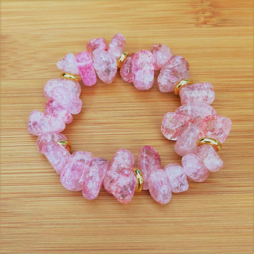 Berry Quartz Ice Crystal and Gold Bracelet