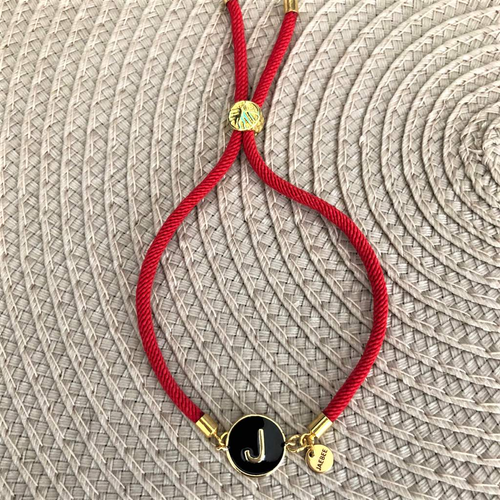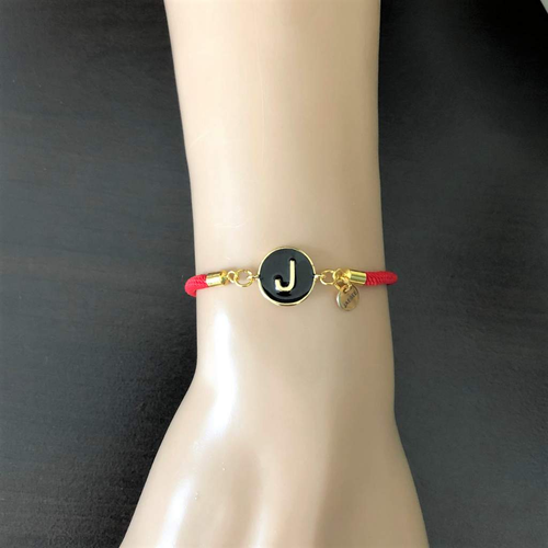 Initial Black Disc Monogram Red or Black Bracelet