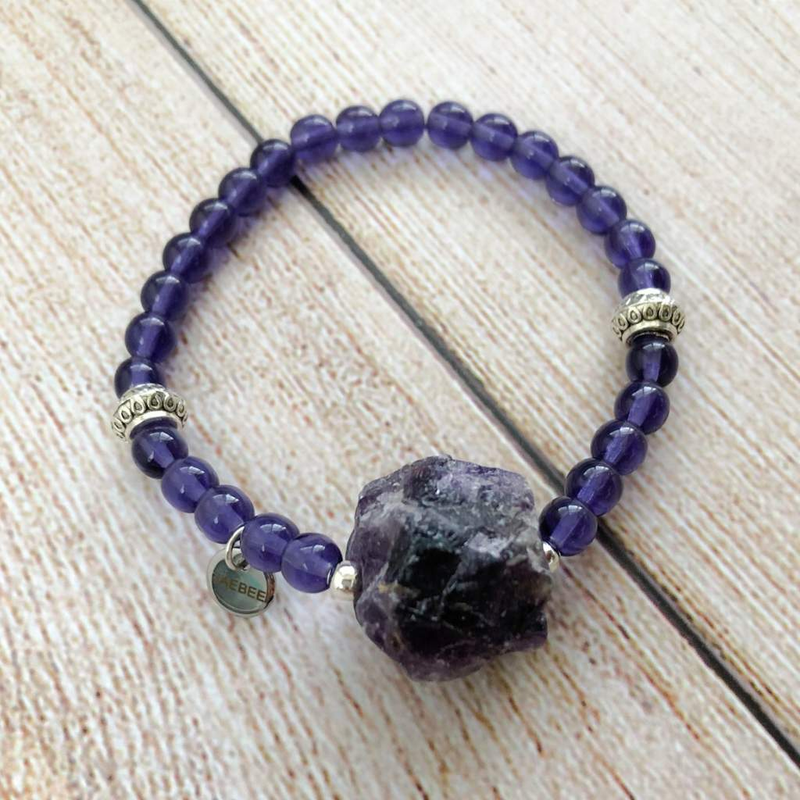 Amethyst stone measures 1" on a 6mm Czech purple beaded stretch bracelet.