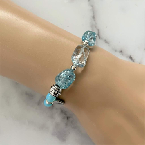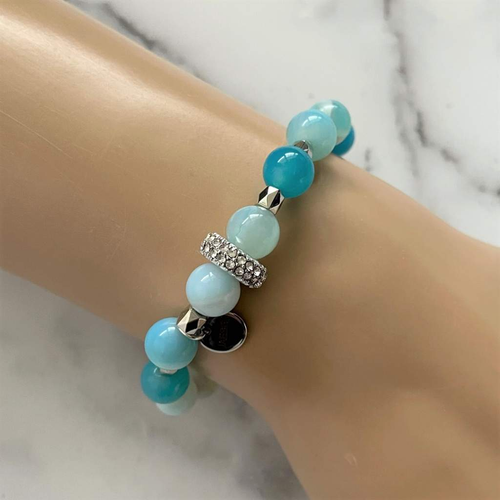 Blue Arctic Agate and Blue Quartz Beaded Bracelet