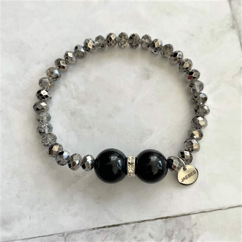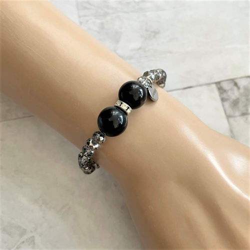 Black Agate and Metallic Hematite Beaded Bracelet