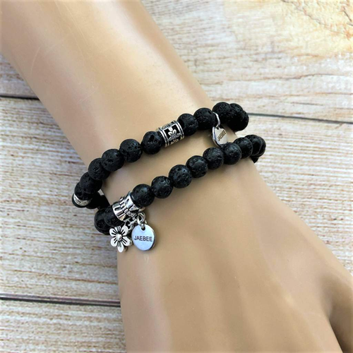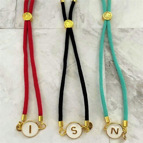 Initial Personalized White Disc Monogram Arctic Blue, Black or Red Bracelet