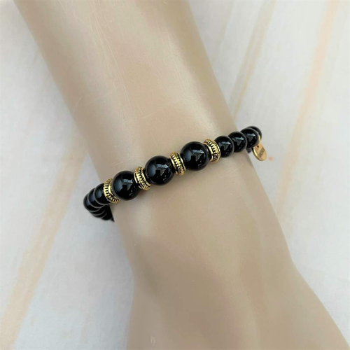 Black Onyx and Gold Beaded Bracelet