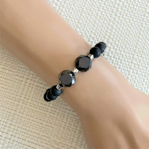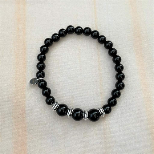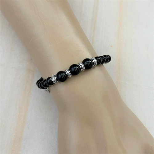 Black Onyx and Silver Beaded Bracelet