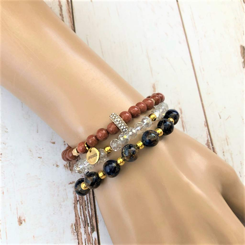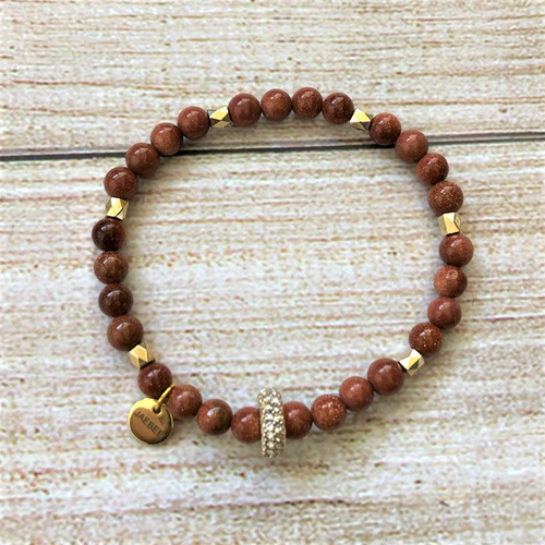 Goldstone and Gold Crystal Beaded Bracelet