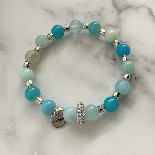 Blue Arctic Agate and Silver Beaded Bracelet