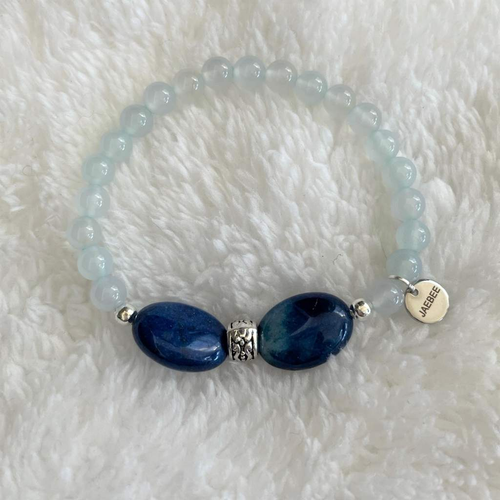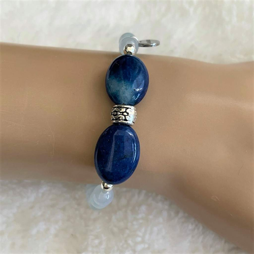 Blue Quartz and Blue Agate Beaded Bracelet with Silver Beads