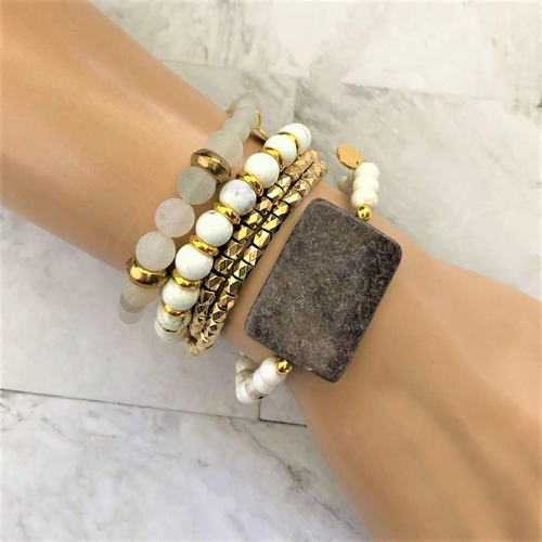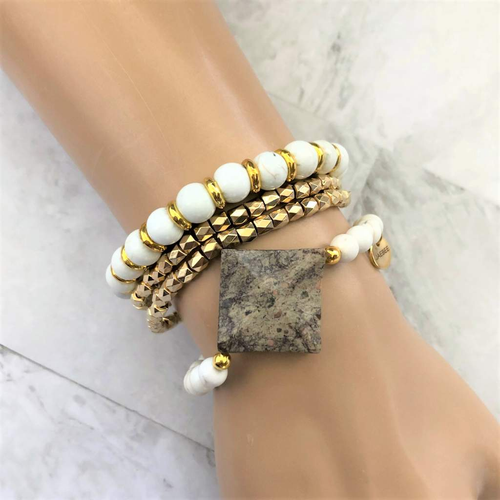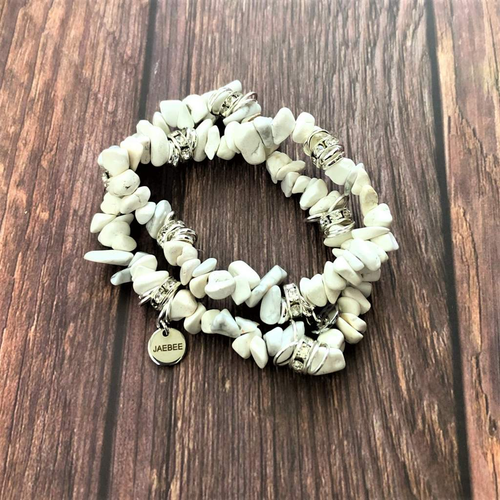 White Howlite Chip Beaded Bracelet Set