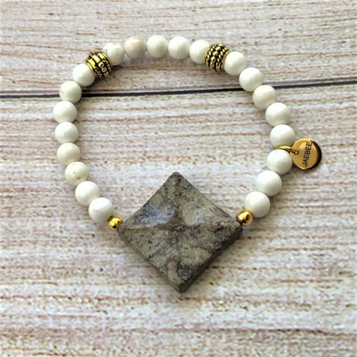 Brown Landscape and White Magnesite Beaded Bracelet