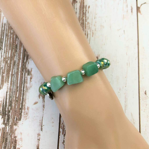 Green Adventurine and Crystal Beaded Bracelet