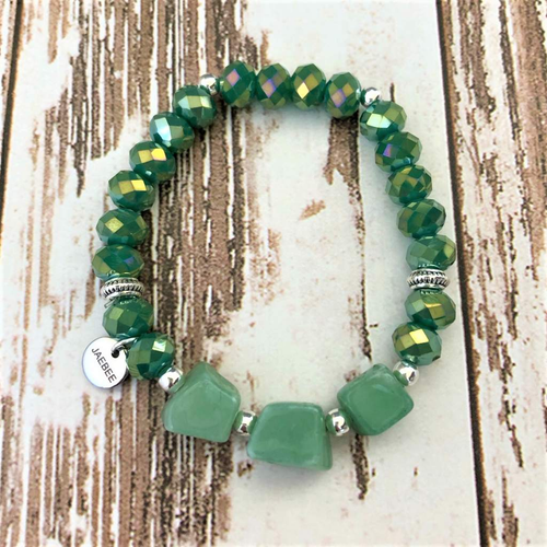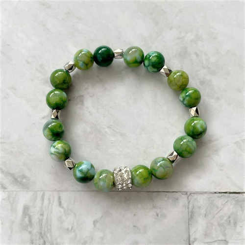 Parrot Green Agate and Silver Beaded Bracelet
