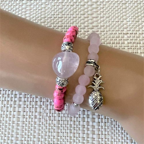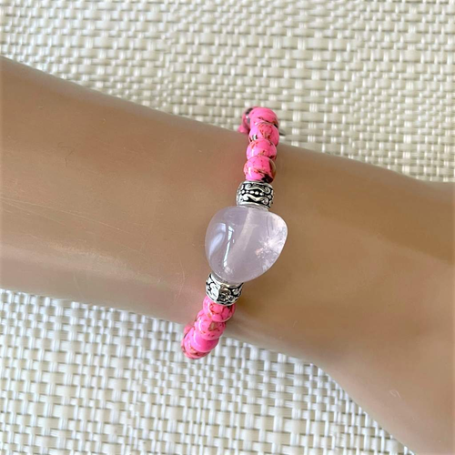 Rose Quartz and Pink Mosaic Beaded Bracelet