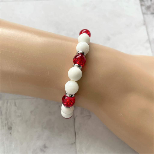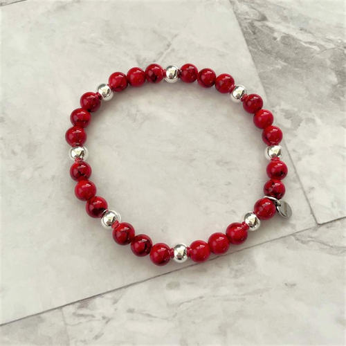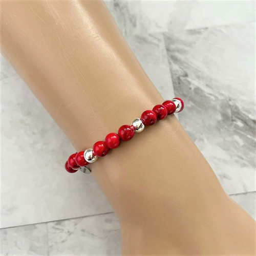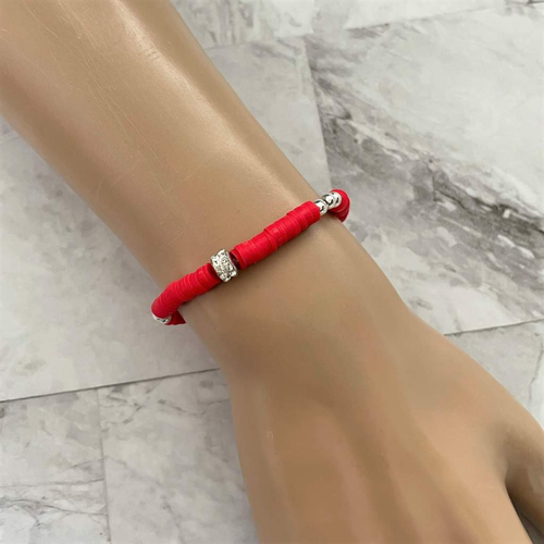 Red Polymer Clay and Silver Beaded Bracelet