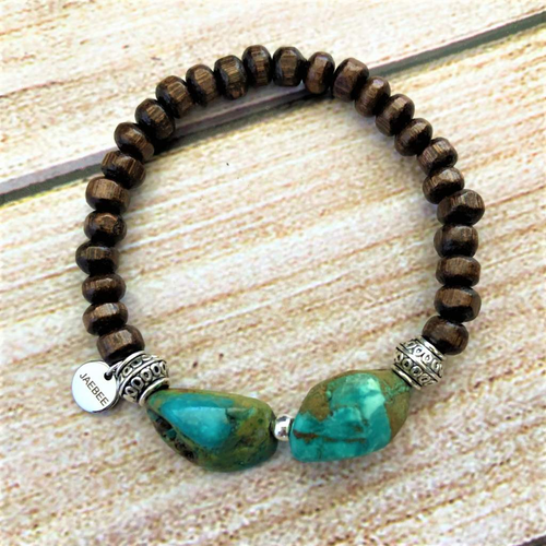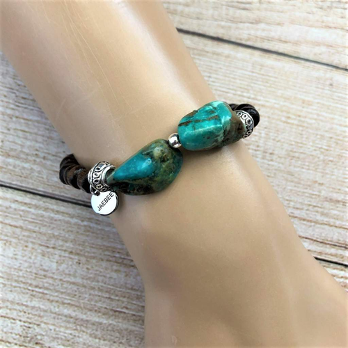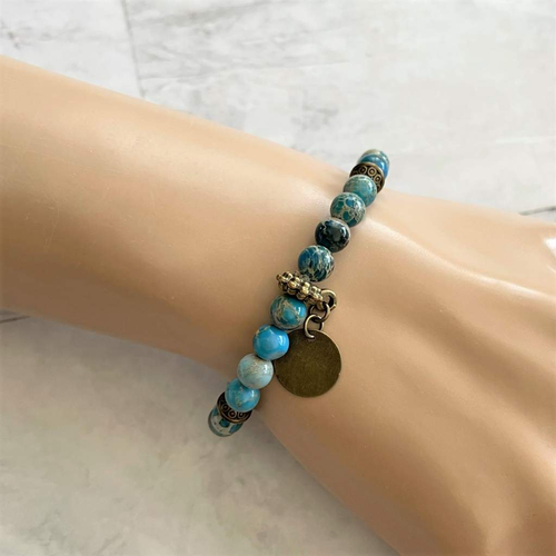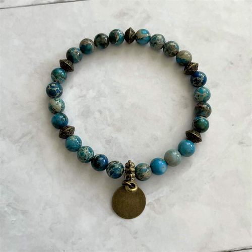 Teal Jasper and Brass Beaded Bracelet