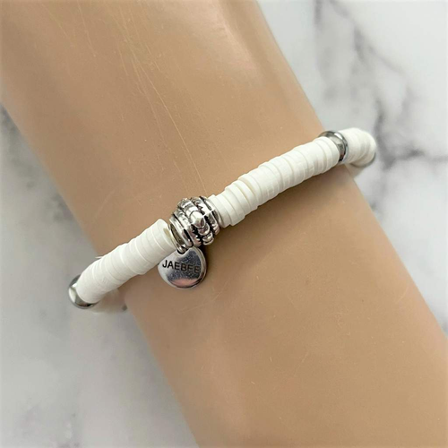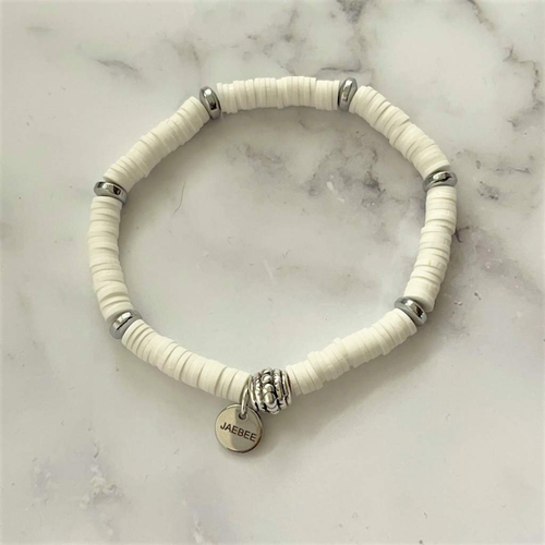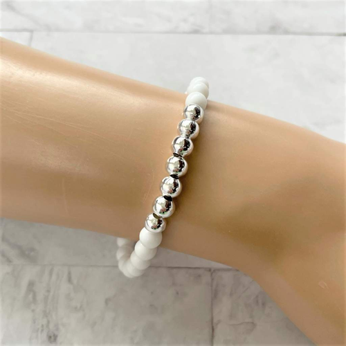 White Polymer and Silver Beaded Bracelet