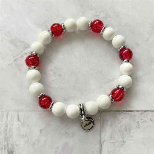 White Shell and Red Glass Beaded Bracelet