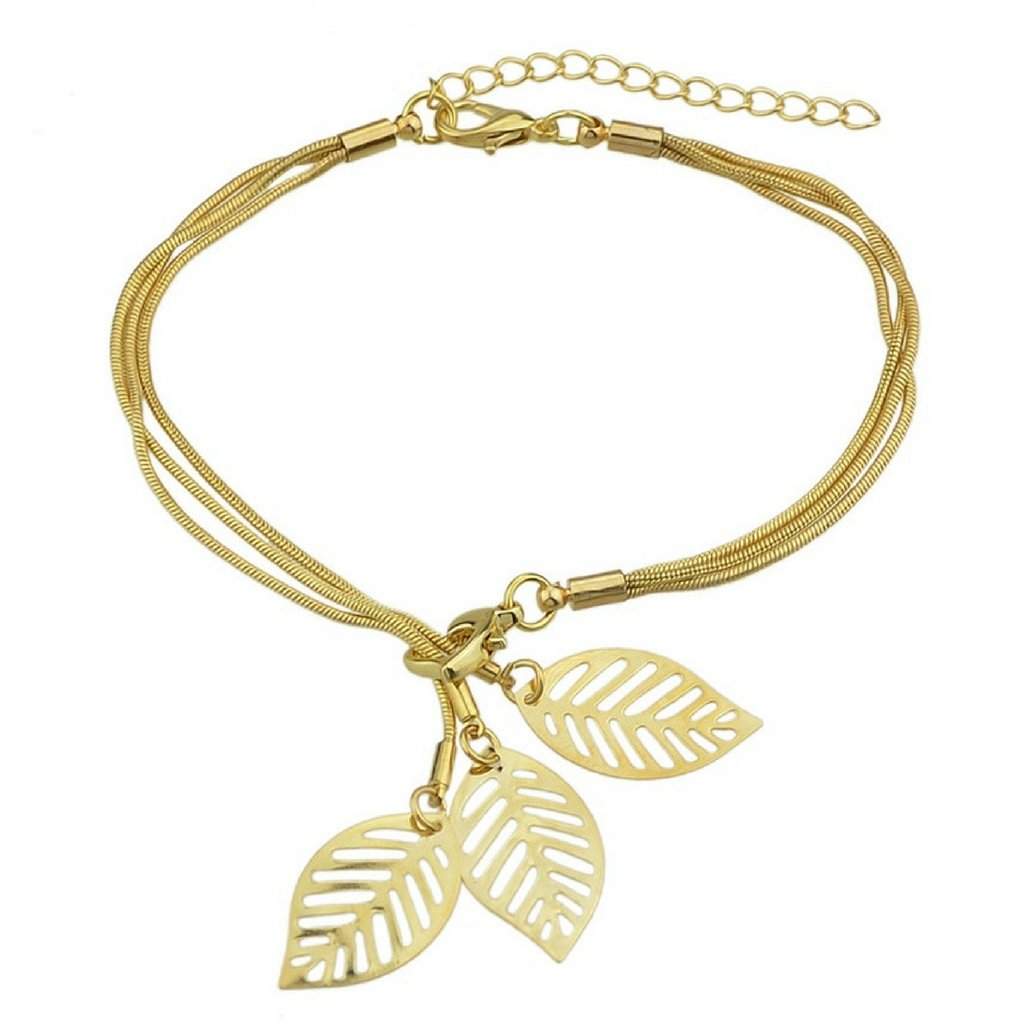 Gold Snake Chain Bracelet with Gold Charm Leaves