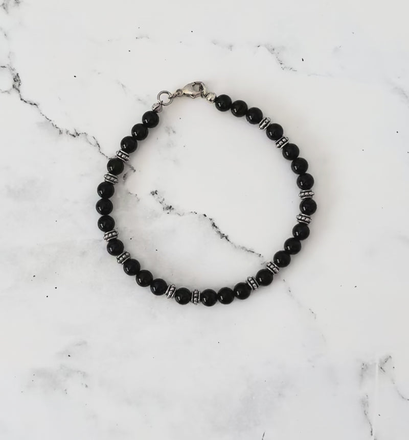 Men's Black Onyx and Silver Beaded Bracelet
