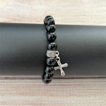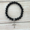 Black Onyx Mens Beaded Bracelet with Silver Cross