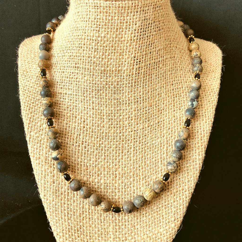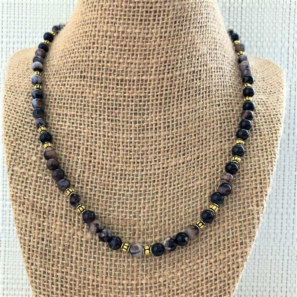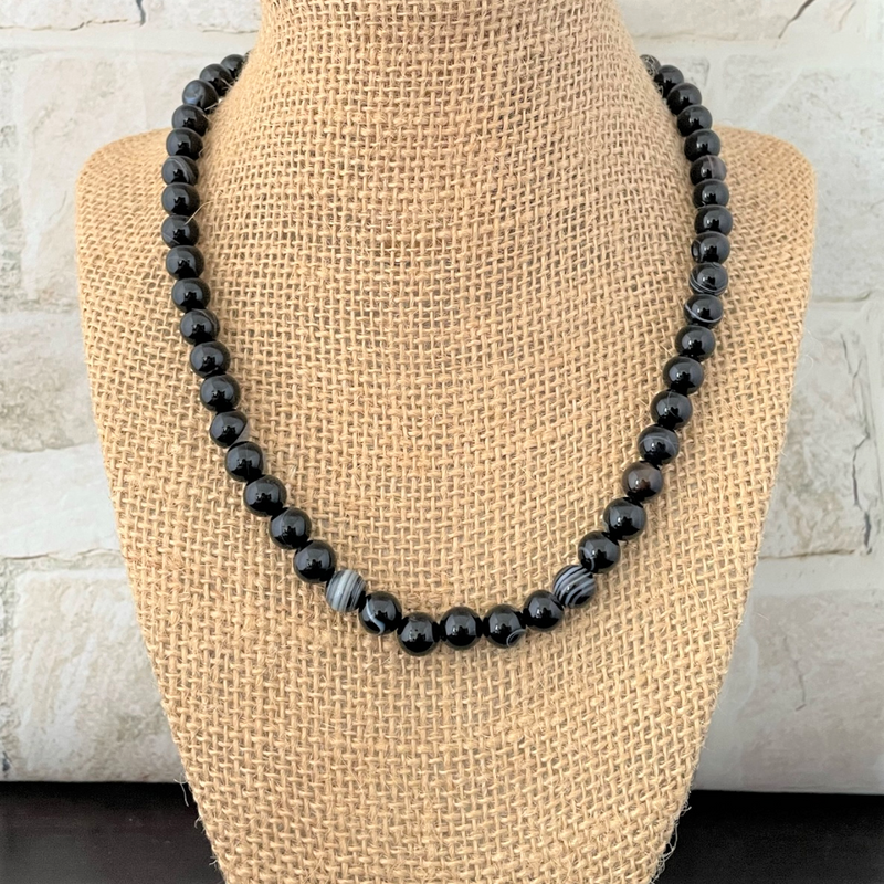 Mens Black Sardonyx Beaded Necklace