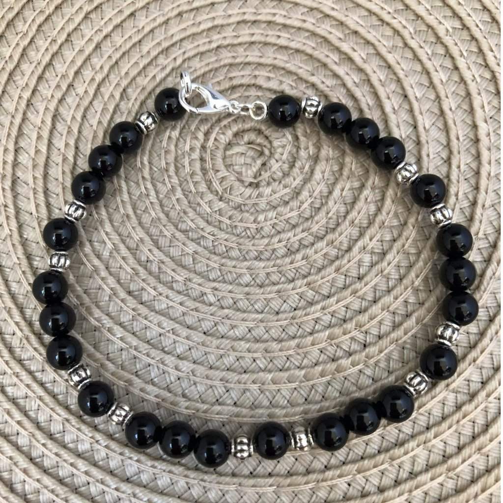 Elevate your everyday style with this sophisticated Black Onyx bracelet, where lustrous gemstone beads meet polished silver accents for an undeniably refined look. The perfectly proportioned 6mm Onyx round beads deliver timeless elegance, while the sterling silver clasp ensures durability and lasting quality. Whether you're dressing up or keeping it casual, this versatile piece adds an instant touch of class to any outfit.