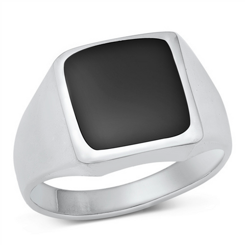 Mens Black Onyx Square Sterling Silver Ring