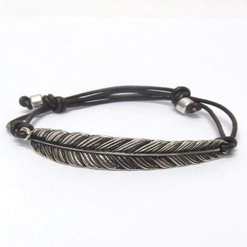 Silver Tibetan Feather and Black Beaded Bangle Bracelet