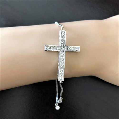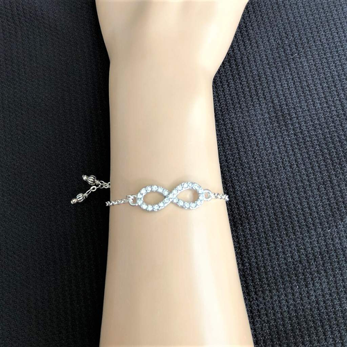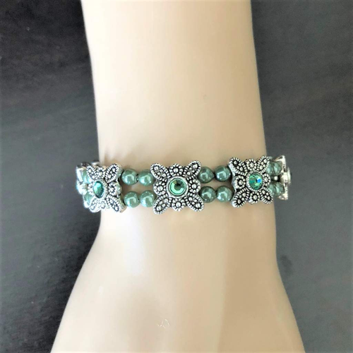 Silver Crystal Beaded Bracelet with Black Crystal Bar