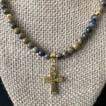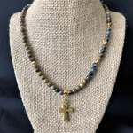 Artistic Stone Mens Gold Cross and Beaded Necklace