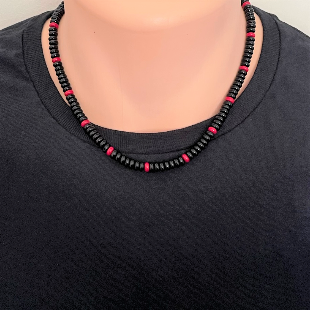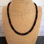 Black Agate and Red Coral Mens Wheel Beaded Necklace