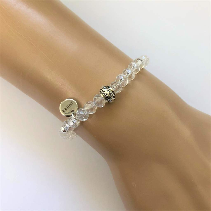 Crystal clear 6mm beads accented with 4mm silver beads and a larger detailed silver bead.