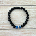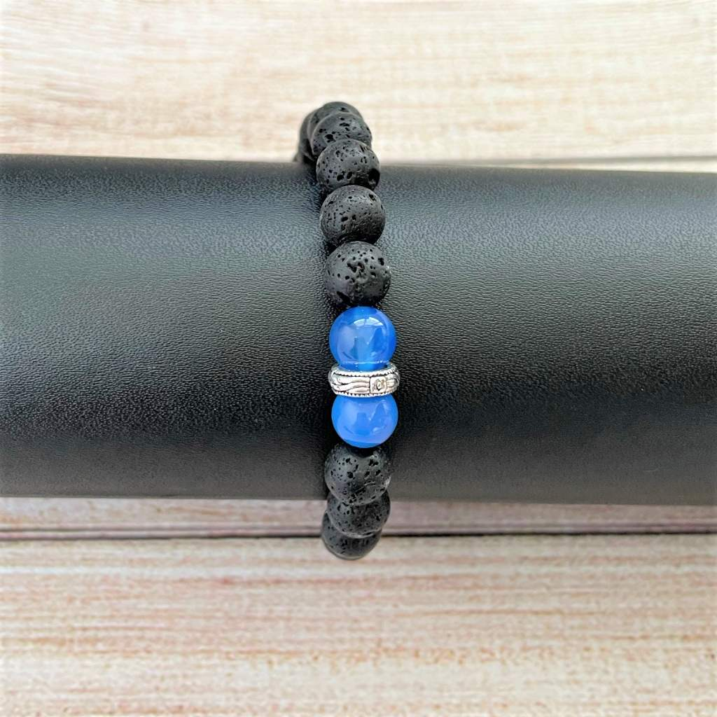 Black Lava and Blue Agate Mens Beaded Bracelet