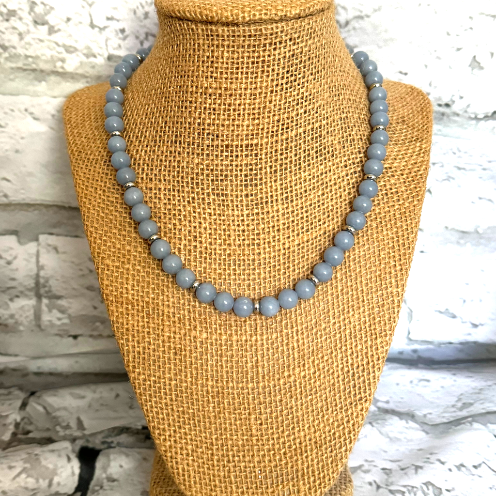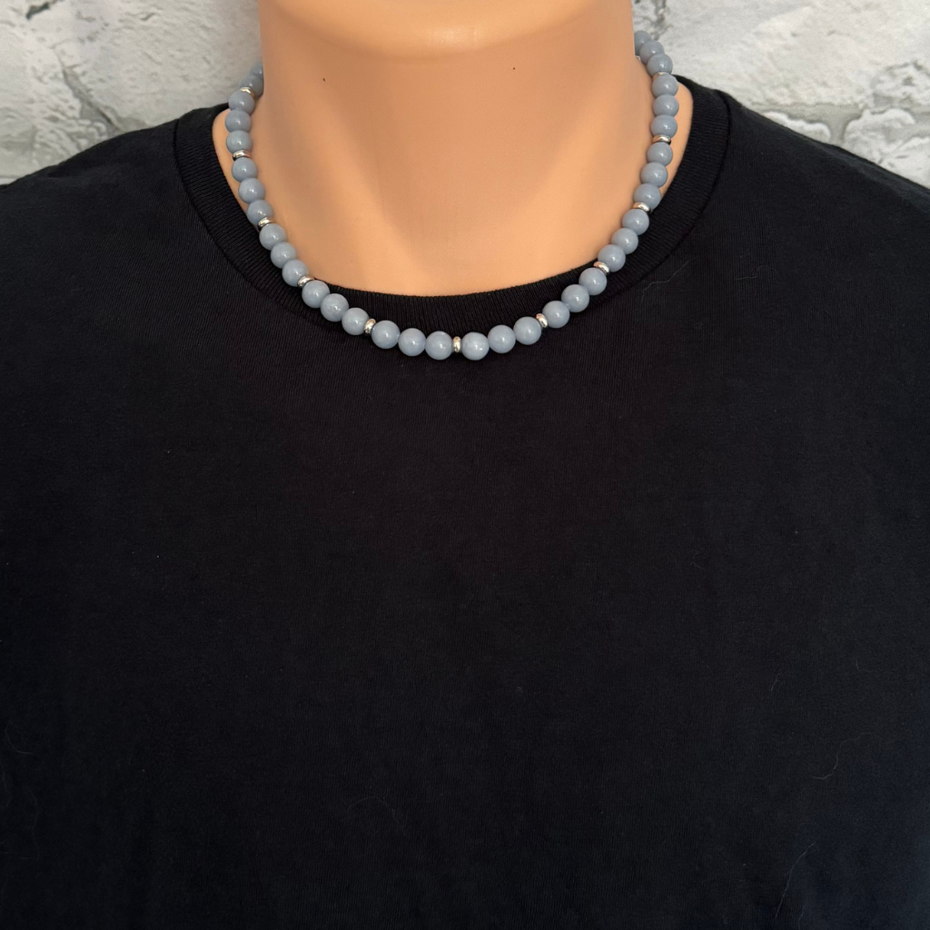 Elevate your style with our exquisite Angelite Men's Necklace. Crafted with beautiful blue Angelite beads and high-quality stainless steel accents, this piece exudes sophistication and elegance.