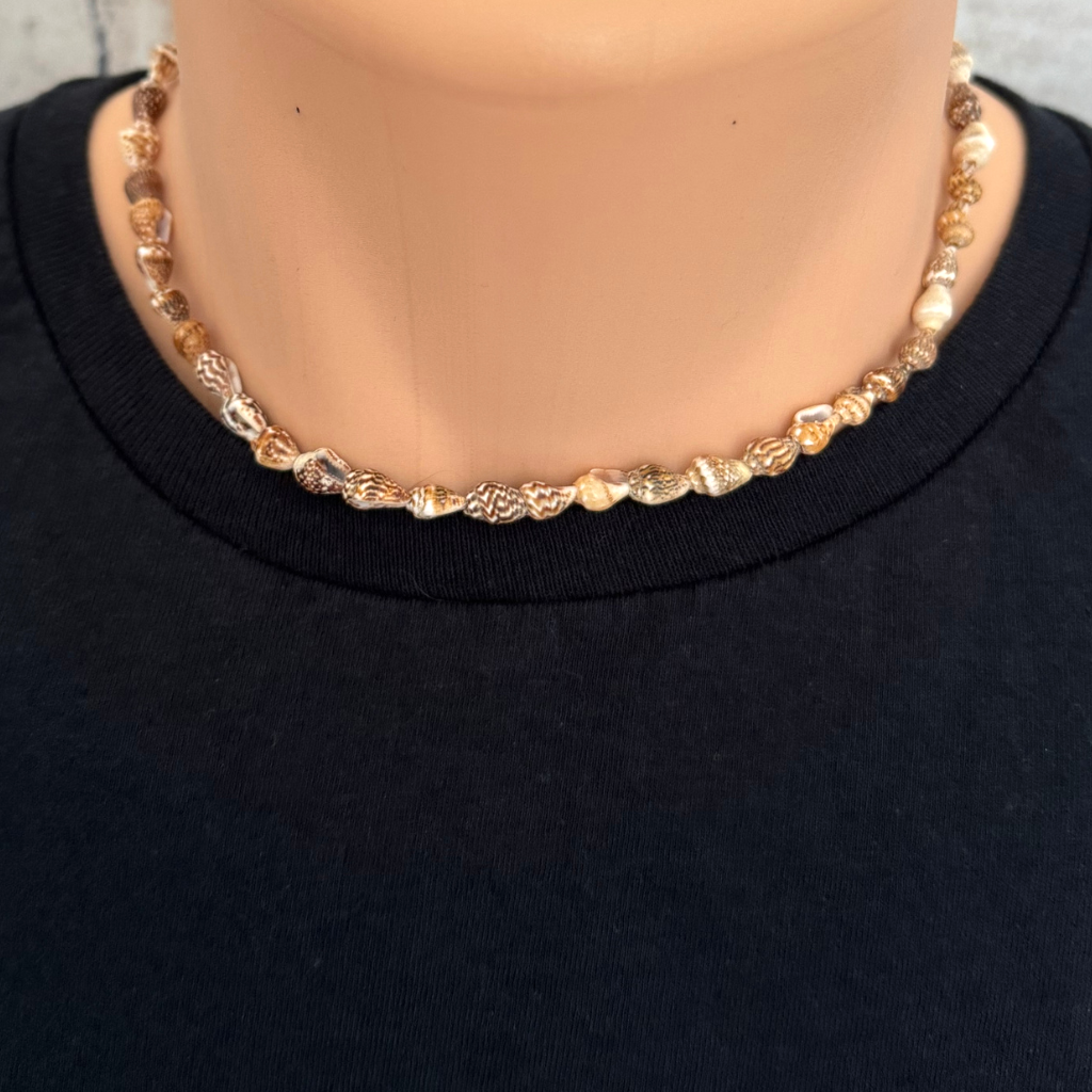 Brown and White Mens Puka Shell Necklace