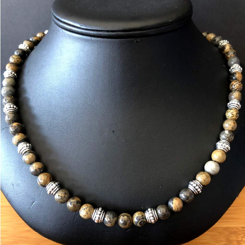 Brown, Black, and Gray Jasper Mens Beaded Necklace