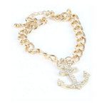 Gold and Crystal Anchor Charm Bracelet