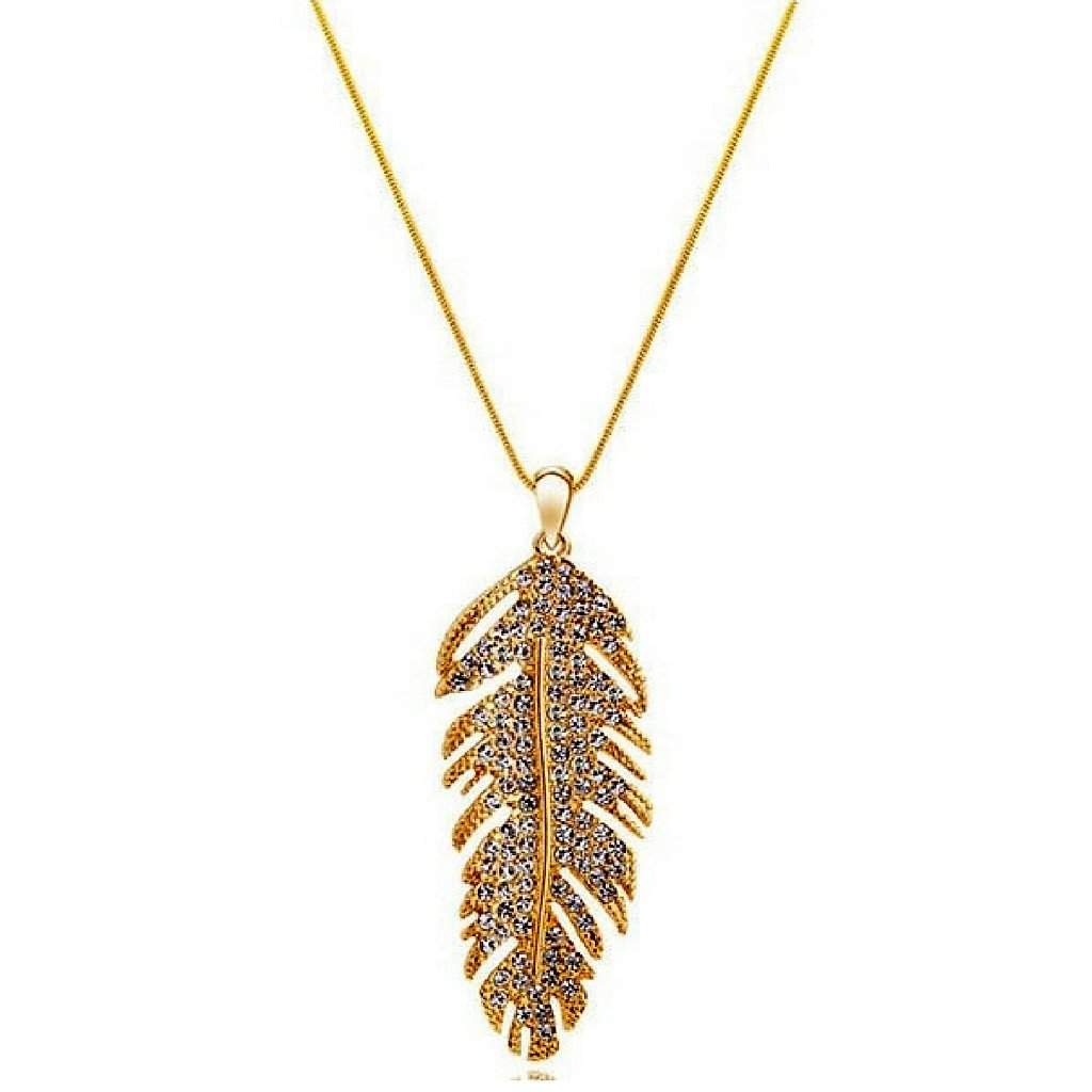 Gold and Crystal Feather Pendant