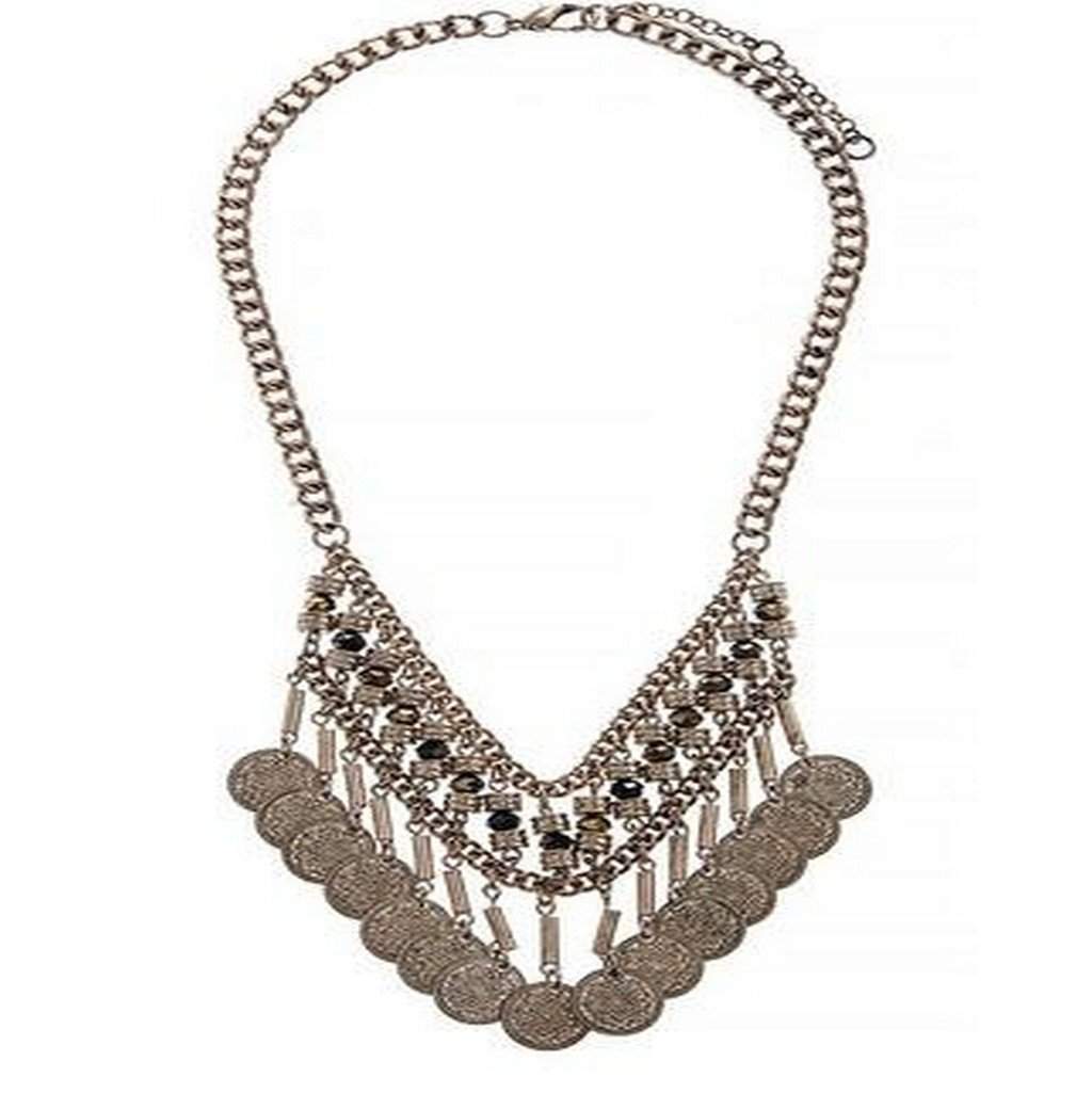 Elevate your everyday style with this stunning bib necklace that combines bohemian charm with timeless elegance. Adorned with warm gold and rich brown beads, it's beautifully punctuated by gleaming gold coin charms that catch the light with every movement. The adjustable 17-inch chain extends to 19 inches, ensuring a perfect fit for any neckline. Make a statement that's both sophisticated and effortlessly chic.