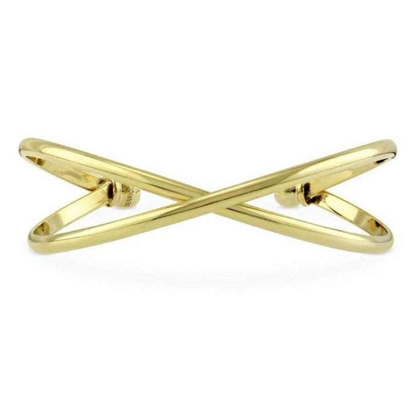 This charming gold metal cuff bracelet features a playful criss-cross design! Measuring 7" long with a 1" gap, it’s the perfect fit for adding a fun twist to your look.