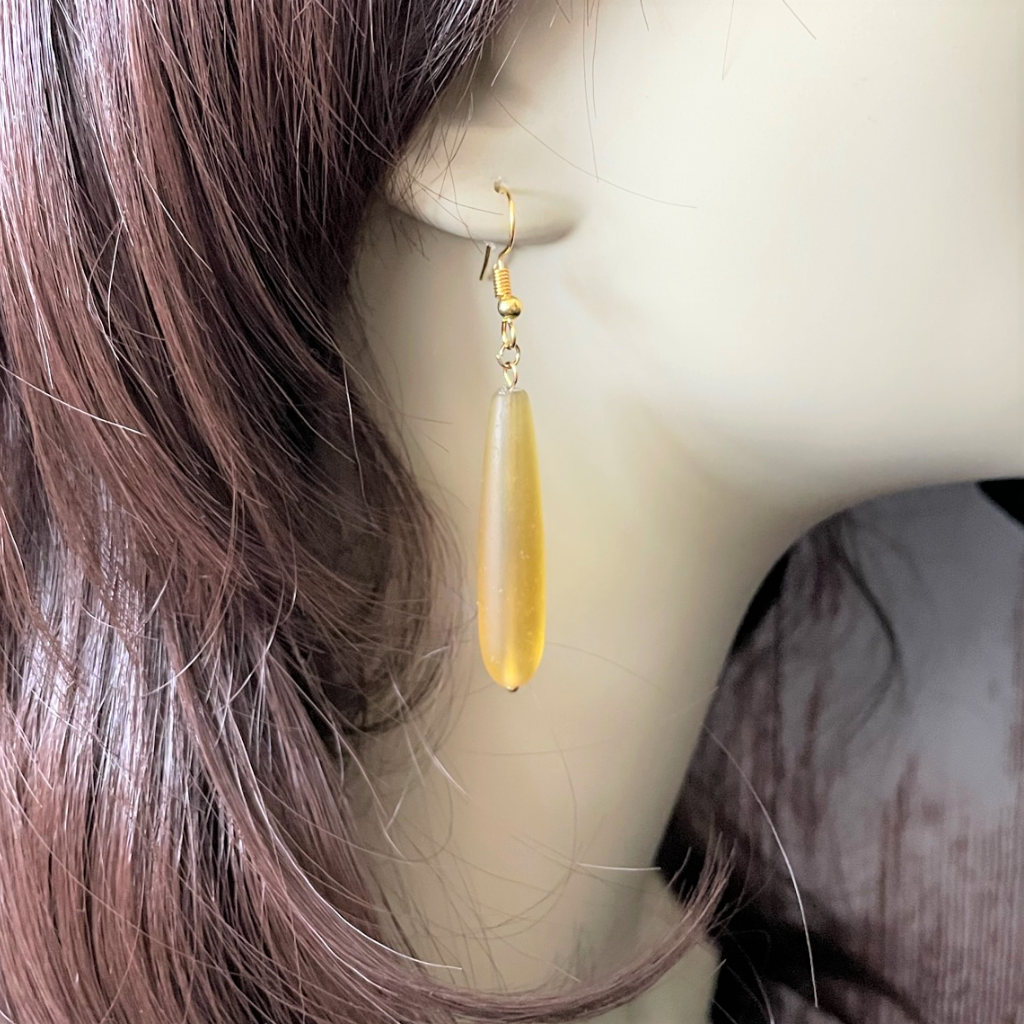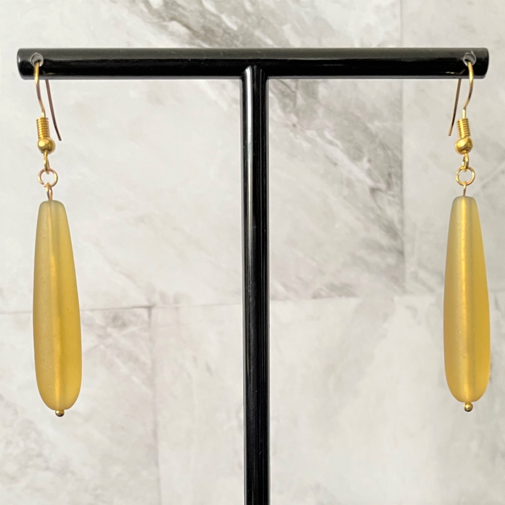 Semi-translucent gold matte glass teardrop measures 1 1/2".