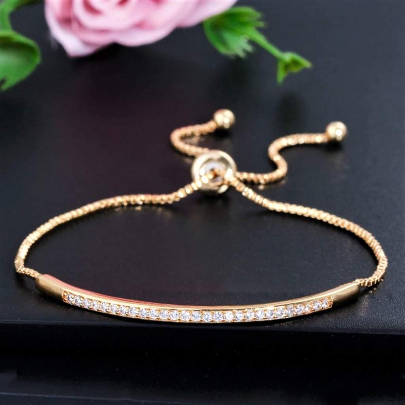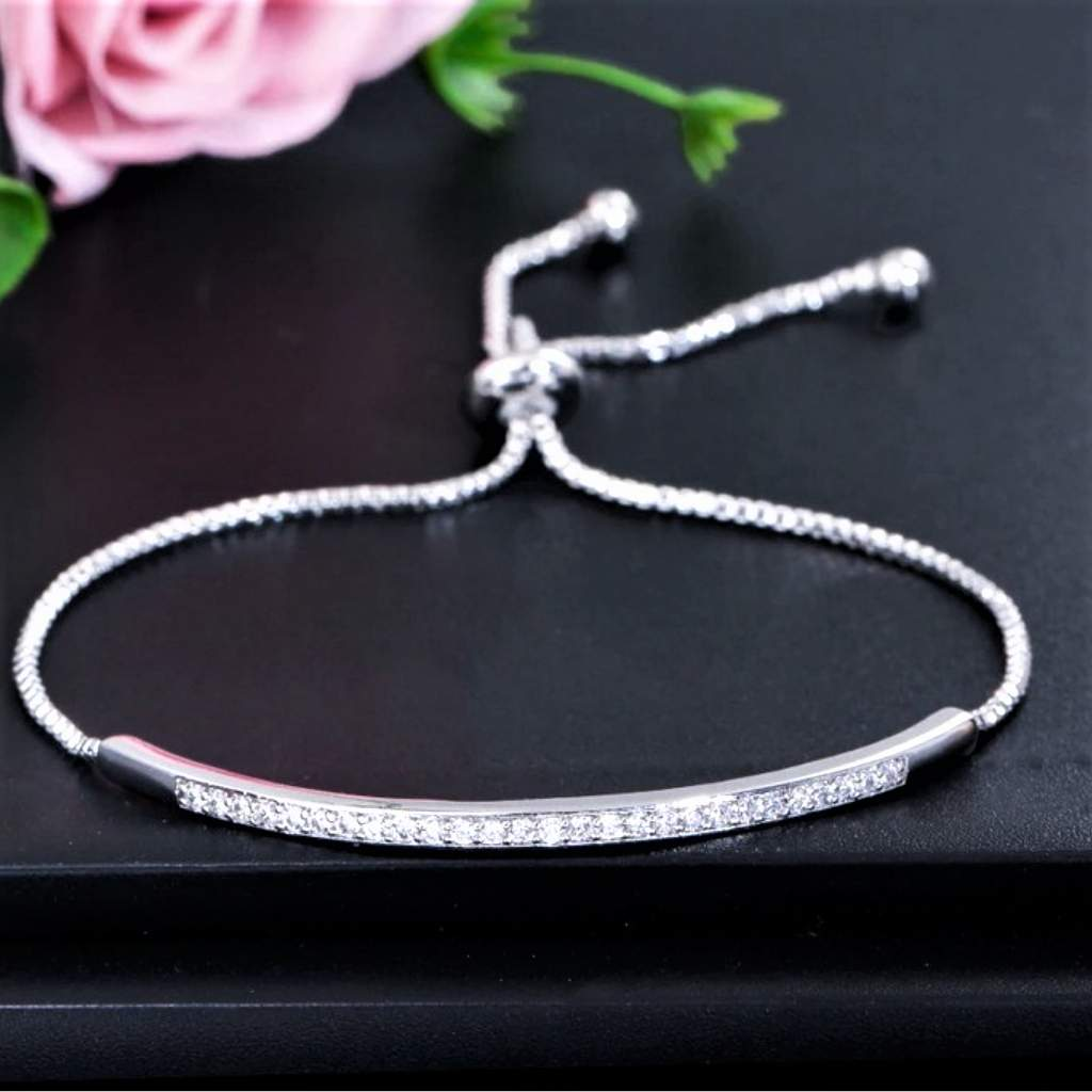 Gold or Silver CZ Bar Adjustable Bracelet