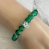 This bracelet features green crackled glass beads paired with silver flower-shaped rondelles. At the heart of the piece, a big flower bead steals the show. Designed to stretch, it’s easy to slip on and off for a fun, stylish look.