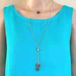 Hematite Druzy Drop Long Layered Lariat Necklace