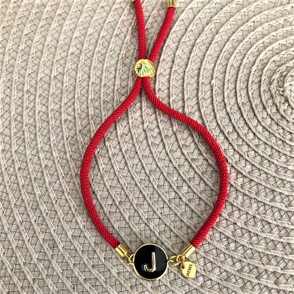 Elevate your accessory game with this striking bracelet featuring a black metal disc with a raised gold initial. The adjustable red or black cord ensures a perfect fit, while the 1" disc offers a sophisticated way to make your style uniquely yours. Don’t miss the chance to personalize your look effortlessly.